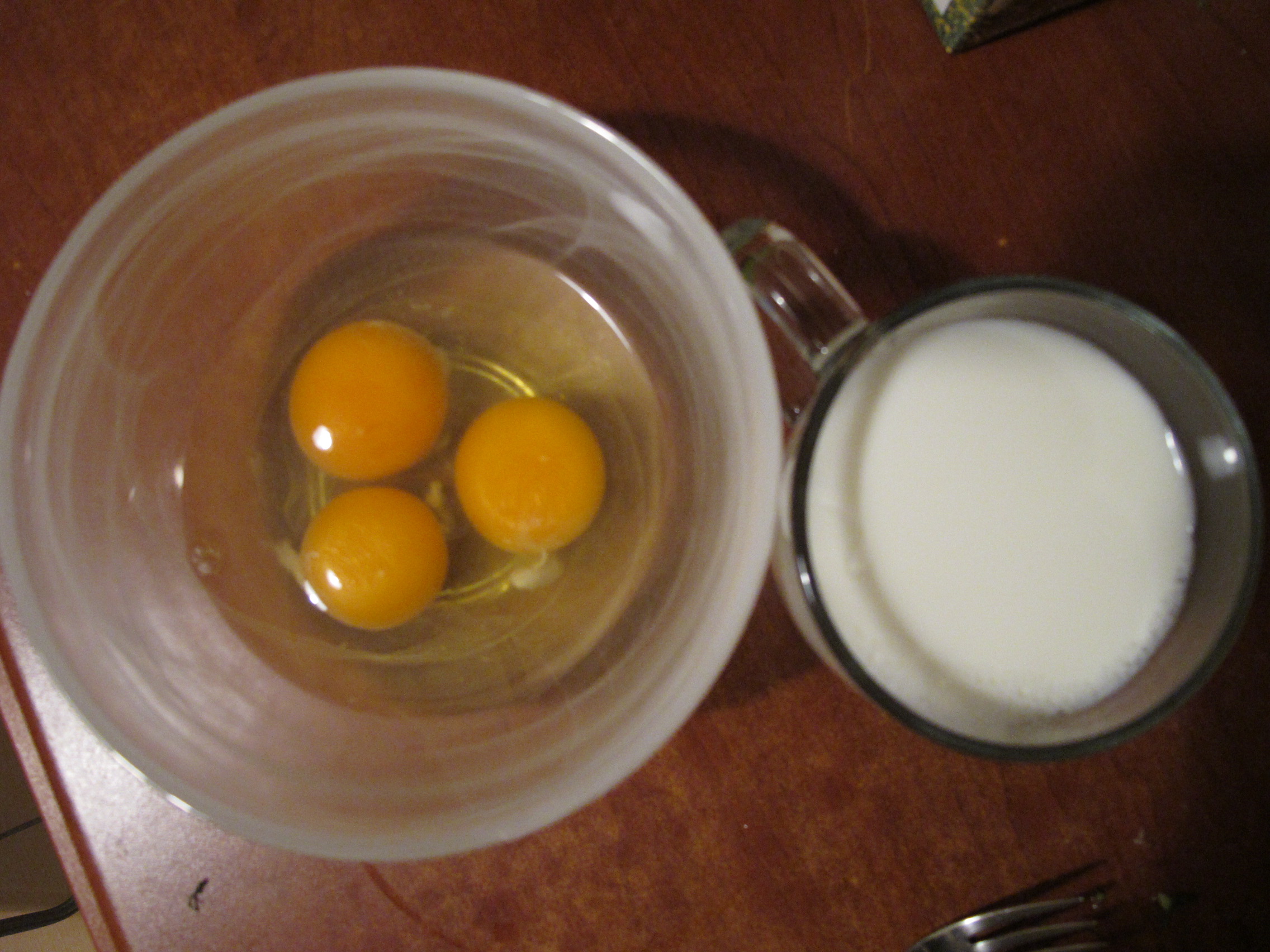 Ara harcı için yumurtaları kırıp çırpın, üzerine süt (artık keçi sütü kullanıyorum, daha hafif oluyor) ve yağı ekleyin.