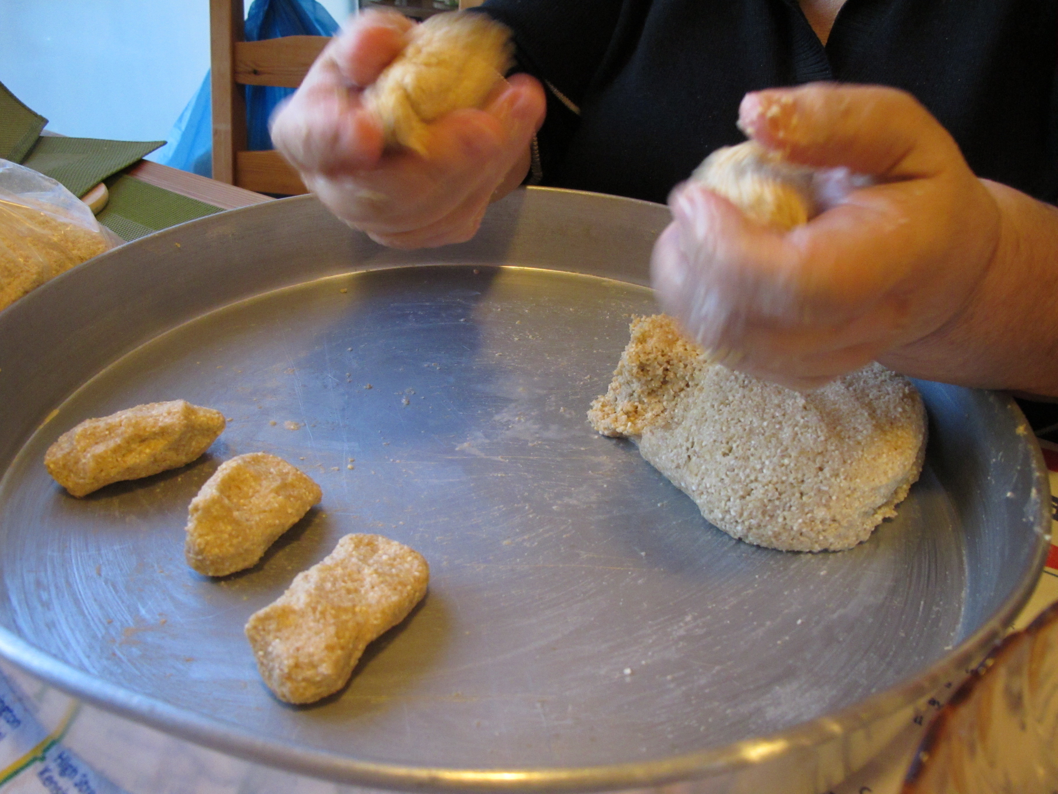 Yöresel tatları denemek ve uygulamalı öğrenmek amacıyla Sengül Teyze’nin mutfağındaki turuna devam ediyorum; malum yapacağımız 4 yemek/köfte vardı. ilk olarak Sıkmalı köfteyi hazırlamıştık. şimdi sıra çimdikli köftede.