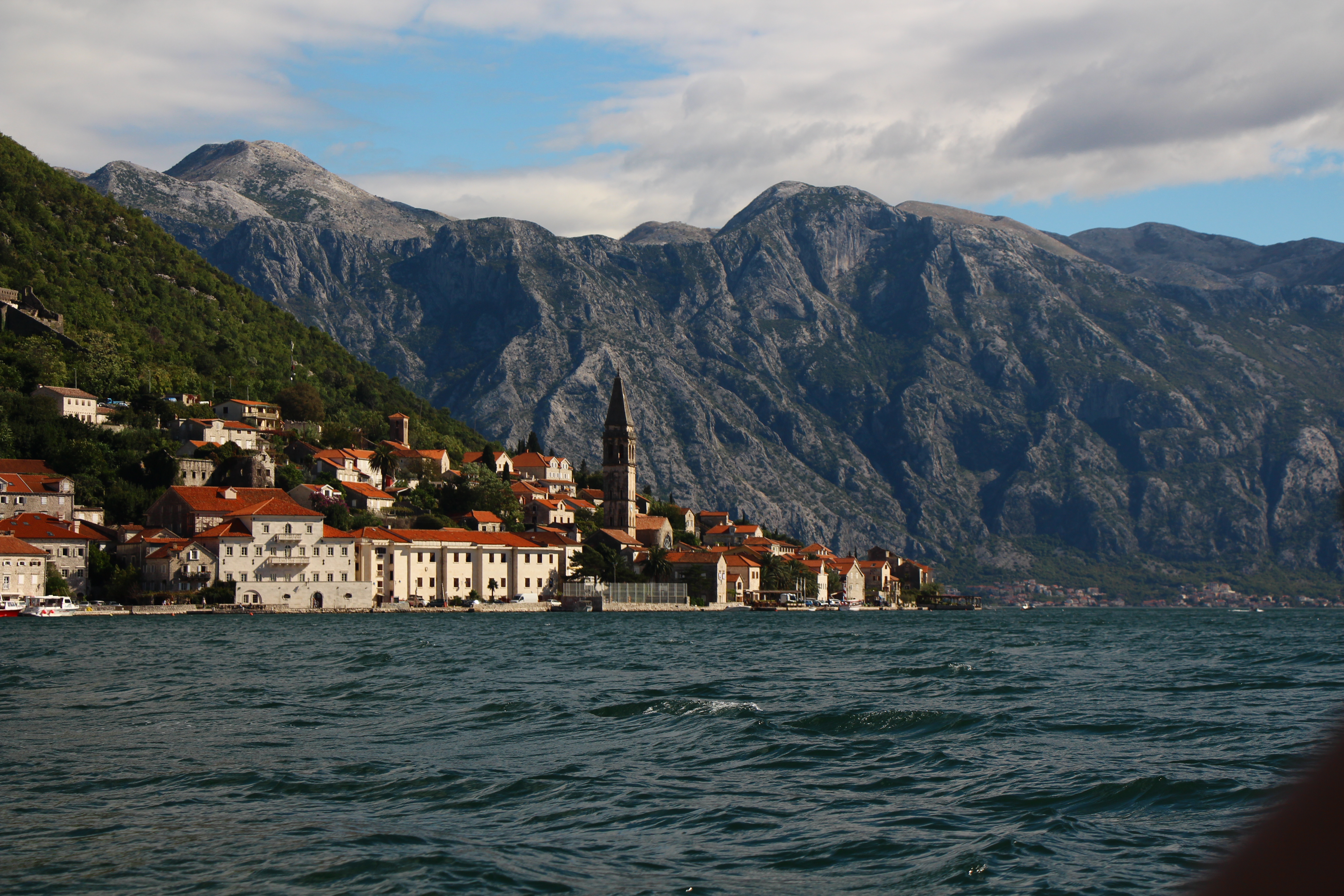 Arabayı Perast kasabasının girişinde, anayol kenarındaki cep otoparklardan birine parkettik. Kasabaya yürüyerek girdik. Yaklaşık 600 kişinin kışın yaşadığı bu küçük kasaba 16 kilisesi ve 17 piazzası ile farklı bir yer. 55m’lik çan kulesiyle Aziz Nicholas kilisesi öne çıkıyor. Kasabanın açıklarındaki iki küçük ada (Sveti Dorde ve Gospa od Skrpjela) kasabanın turistler için diğer çekici olan kısımları.
