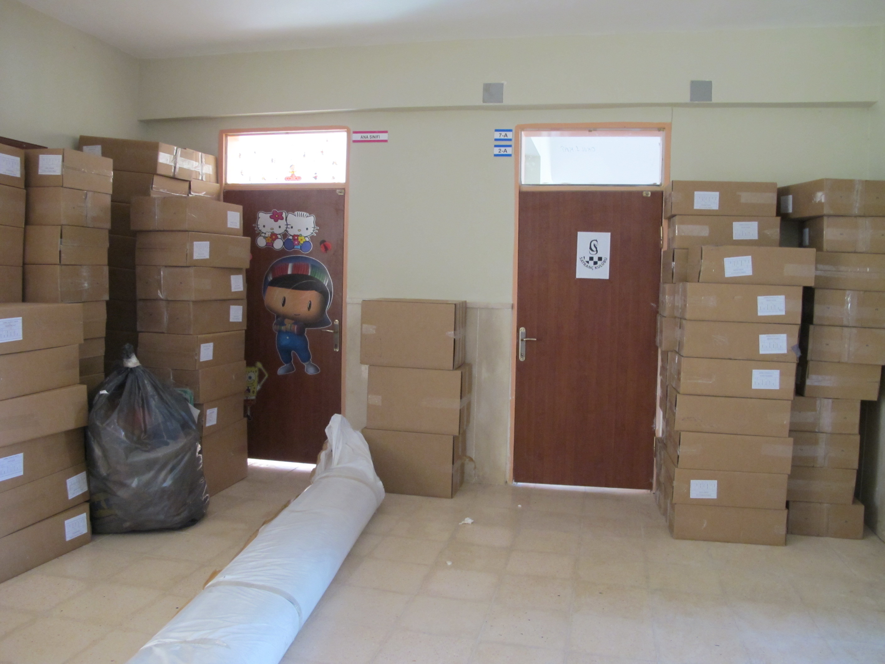Tır üzerinden bütün koliler okul bahçesine boşaltıldı. Sarnıç’a gidecekler küçük bir kamyona yüklendi. Kolilerin tasnifi sırasında farkedildi ki, listelerde eksiklik yapılmış. Bazı öğrenciler (durumları göreceli daha iyi diye) bize gönderilen listelere eklenmemiş. Hemen bir ekip oluşturuldu, bu ekip çarşıya gidip eksik öğrencilerin kolilerini tamamladı. Sonuç olarak, Özel Eğitim Uygulama Okulu’nda 118 öğrencinin kolileri eksiksiz olarak hazırdı.