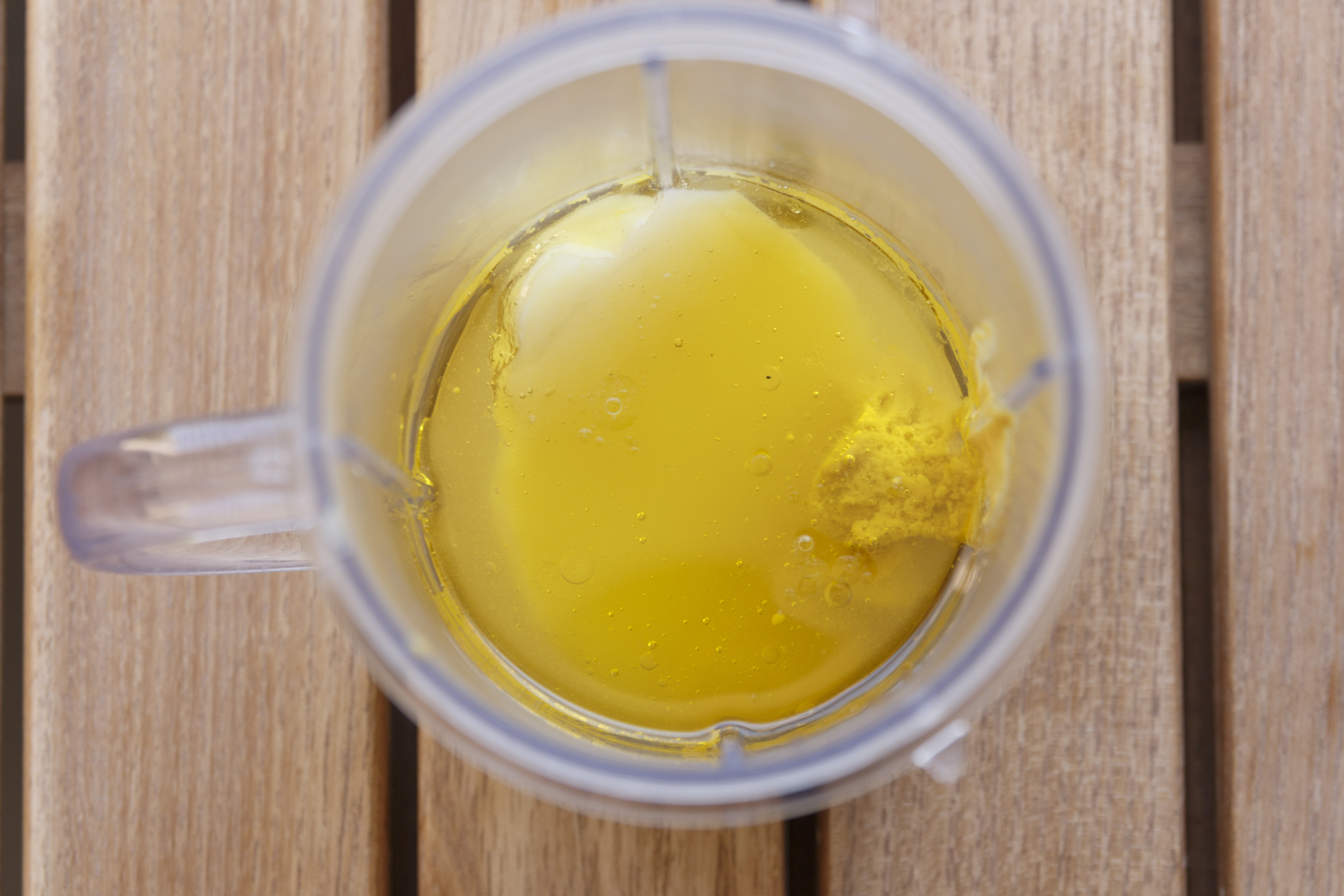 Ayırdığınız patatesi, zeytinyağını, şekeri, hardalı, sirkeyi ve limon suyunu robota koyun. Tuz ve karabiber ekleyip çekin. Çok yoğunsa çok çok az su ekleyebilirsiniz.
